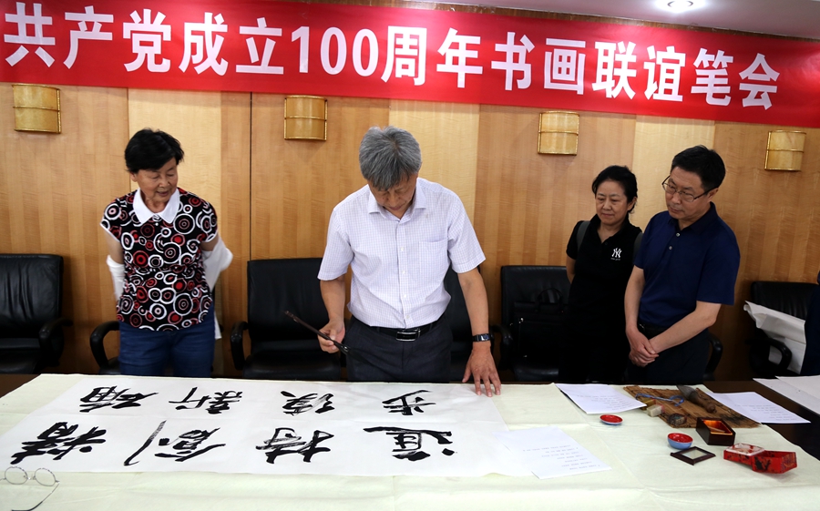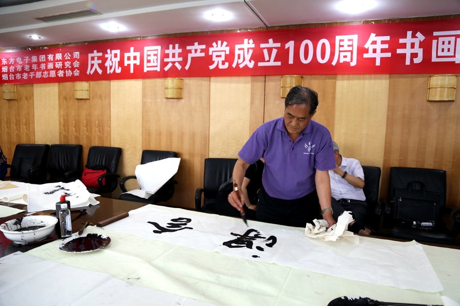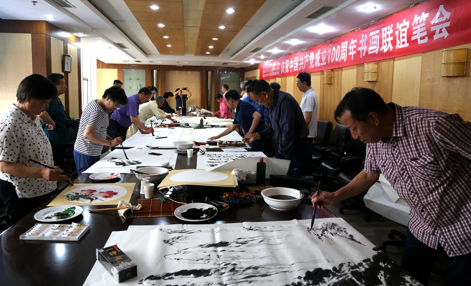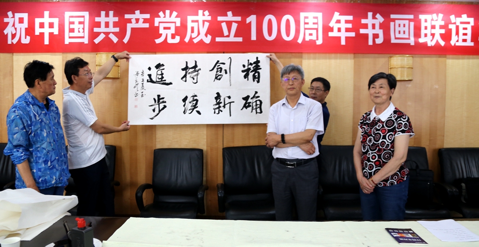 为庆祝中国共产党成立100周年,回顾党的奋斗历程,歌颂美好新时代,助力公司企业文化建设。6月24日,臻政数字科技(北京)有限公司、烟台市老年书画研究会、烟台市老干部志愿者协会共同举办“庆祝中国共产党成立100周年联谊书画笔会”。本次活动共有18位县处级退休老干部书画家参加。